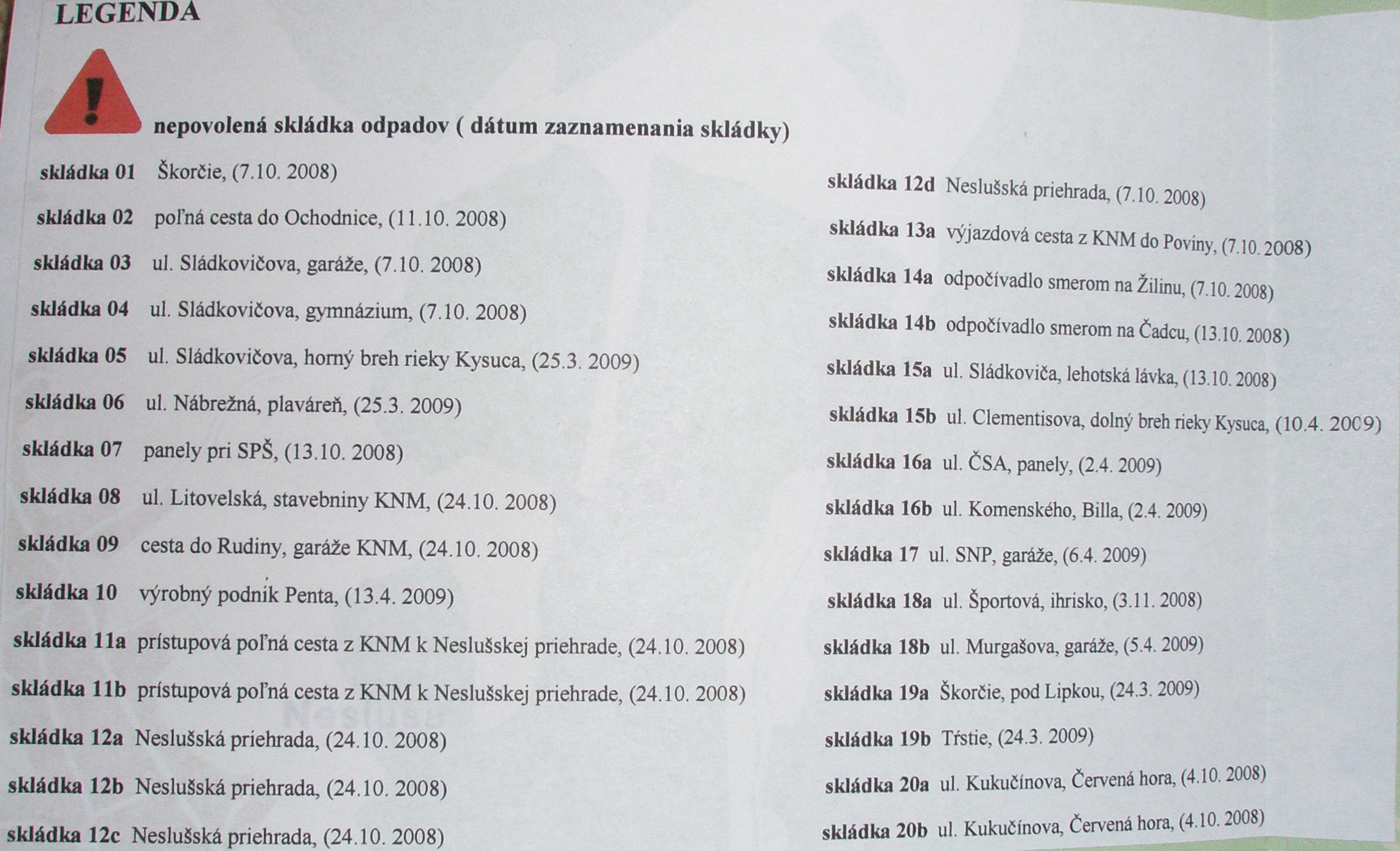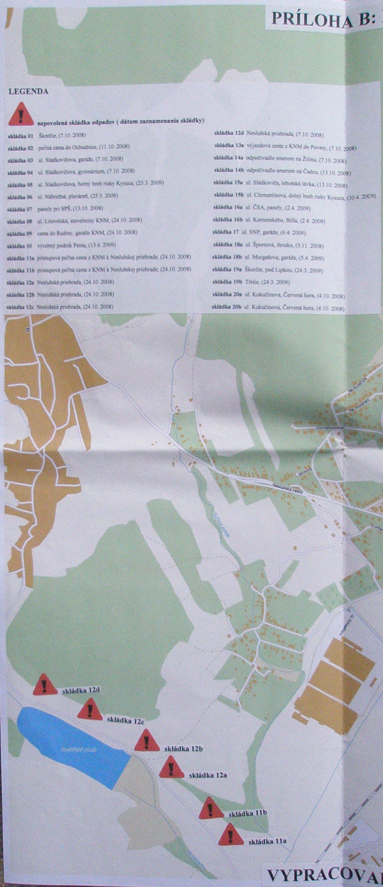 Mapa s označením miest nepovolených skládok odpadu